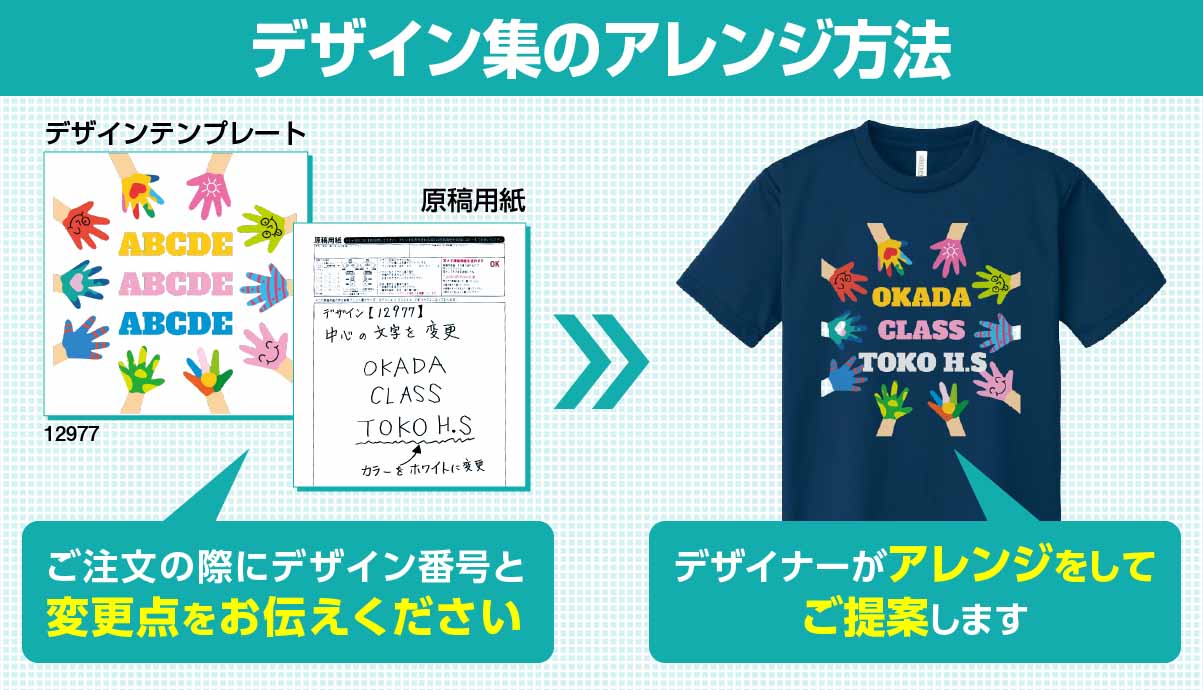 チームウェアやイベント用のスタッフTシャツ、ノベルティや販売用までおまかせください。ドライTシャツや綿Tシャツなど豊富な生地や素材、デザイン、サイズ、カラーをご用意しております。いますぐ自動見積り、手書き原稿でも無料デザイン仕上げ、最短翌日発送!写真やフルカラーデザインも激安で印刷作成。1枚から大量オーダーまでプリントTシャツの作成ならおまかせください!