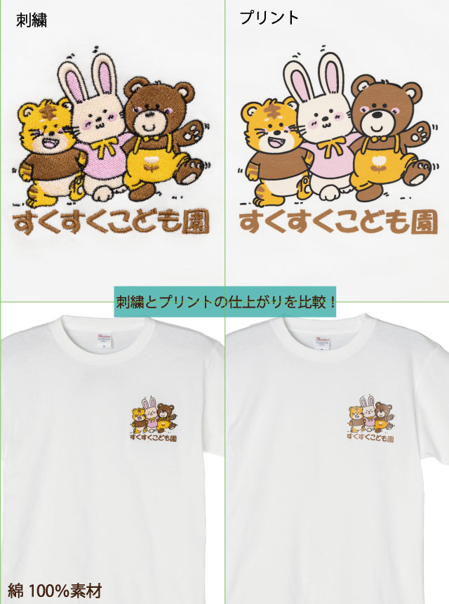 保育園のクラスTシャツをお願いしました。サンプル作成から納品までとてもスムーズで、安心してお任せできました。梱包も丁寧で、プリントの仕上がりもとてもきれいでした。出来上がったTシャツを見た子どもたちも大喜びで、良い思い出になりました。これから卒園までたくさん着用したいと思います。いろいろな割引があるのもありがたく、また機会があればぜひお願いしたいです。