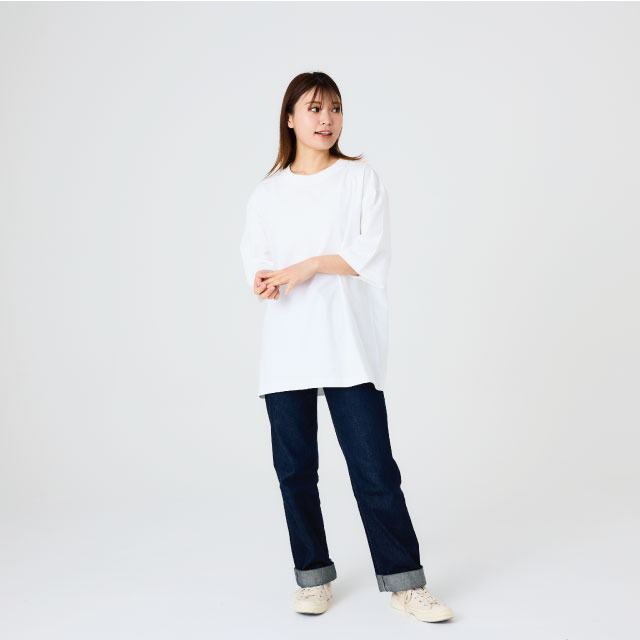 DF1103 | SLOTH上質な綿を使用し、糸の密度を高めた編み方でゆったりとしたサイズのTシャツ。一般的なTシャツより細かく編み上げることで、生地の耐久性の高さと首回りのよれにくさが特徴の商品です。6.6オンスという厚めの生地でホワイトでも透けが気にならないところもポイントの1つ。綿100%でつくられており、肌の弱い方でも問題なくご着用いただけます。丈夫で長持ちするため、アパレルの販売用や記念品のオリジナルグッズ製作などにぴったりの1枚です。