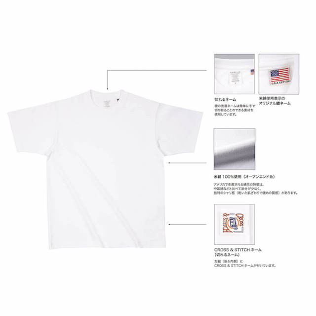 UCS-950 | CROSS&STITCHアメリカで生産された綿を使用した、快適な着心地と品質の高さが特徴のTシャツです。油分が少なく、独自のシャリ感で肌ざわりが硬めです。えりの洗濯ネームと左すそネームは手で簡単に切り取ることが可能なので、ショップでの販売用や仕事のユニフォームなどにぴったり!記念のオリジナルTシャツを最高の品質でいつまでも長く着たい方におすすめの商品です。