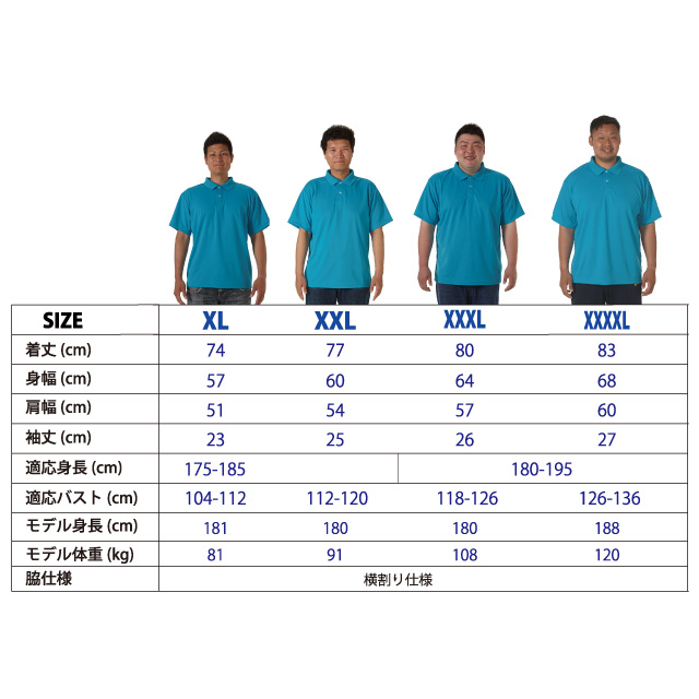 | サイズ | XS〜XXXXL サイズ |