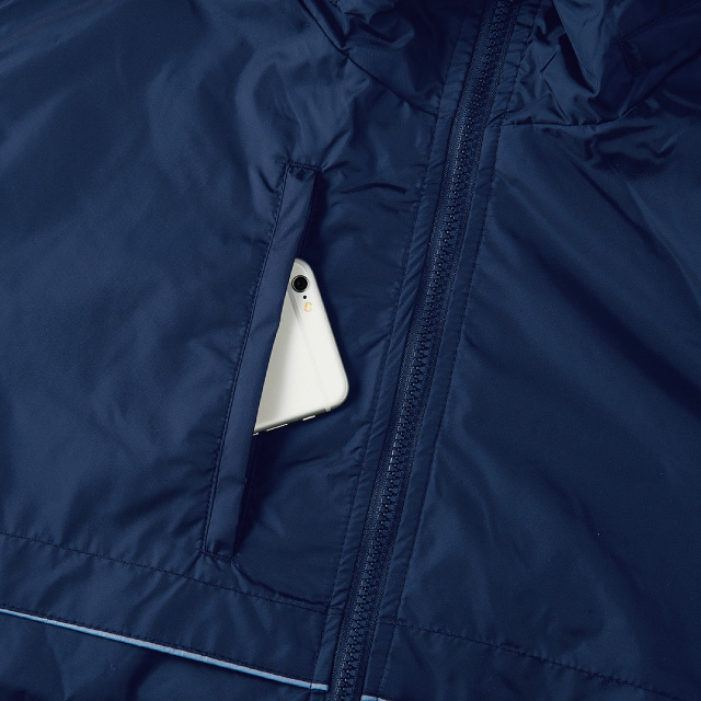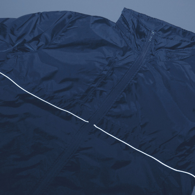 ポリエステル100% マイクロリップストップ 裏地:ポリエステル100% メッシュ 脇下:ポリエステル100% ストレッチリブ ファスナーはシングルスライダー フロントファスナー