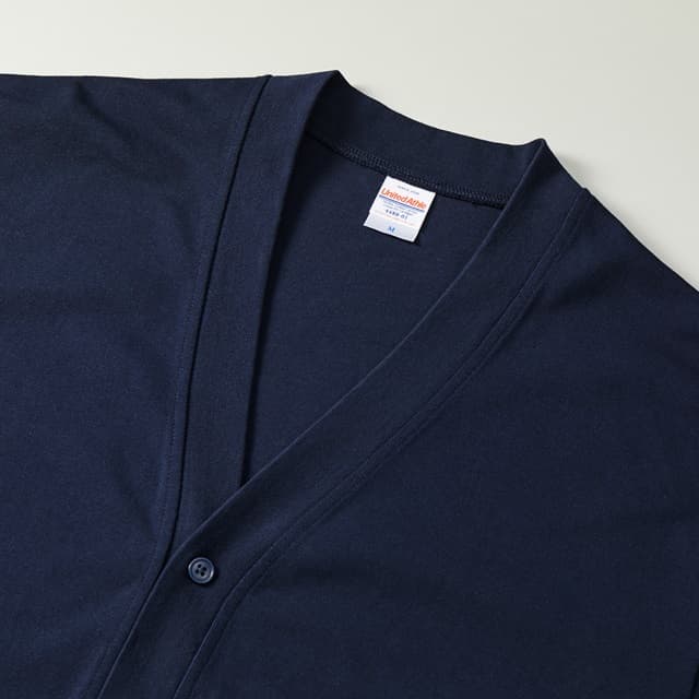 4488 | United Athle季節の変わり目に軽いアウターとしても重宝する、ゆったりめのコットンカーディガン。あえてポケットは付けず身頃と同色のボタンを使用した、シンプルですっきりとしたデザインです。刺しゅう等でデザインをいれる際もより際立ちます。お手入れも簡単で、使いこむほどに風合いの増す生地です。きれいにプリントや刺しゅうができる綿100%の生地を活かして、様々なデザインをお楽しみください。