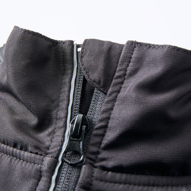 | 素材 | ポリエステル100% マイクロリップストップ 裏地(胴):ポリエステルフリース 裏地(袖):ポリエステル100%タフタ 保温材(袖):ポリエステル100% 脇下:ポリエステル100%ストレッチリブ ファスナーはシングルスライダー フロントファスナー(首元)にはリフレクターテープ付 |