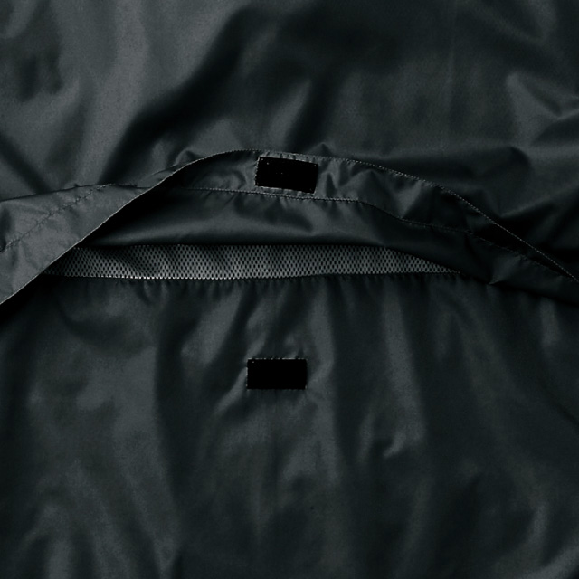ポリエステル100% マイクロリップストップ 裏地:ポリエステル 100% メッシュ 脇下:ポリエステル100% ストレッチリブ ファスナーはシングルスライダー フロントファスナー