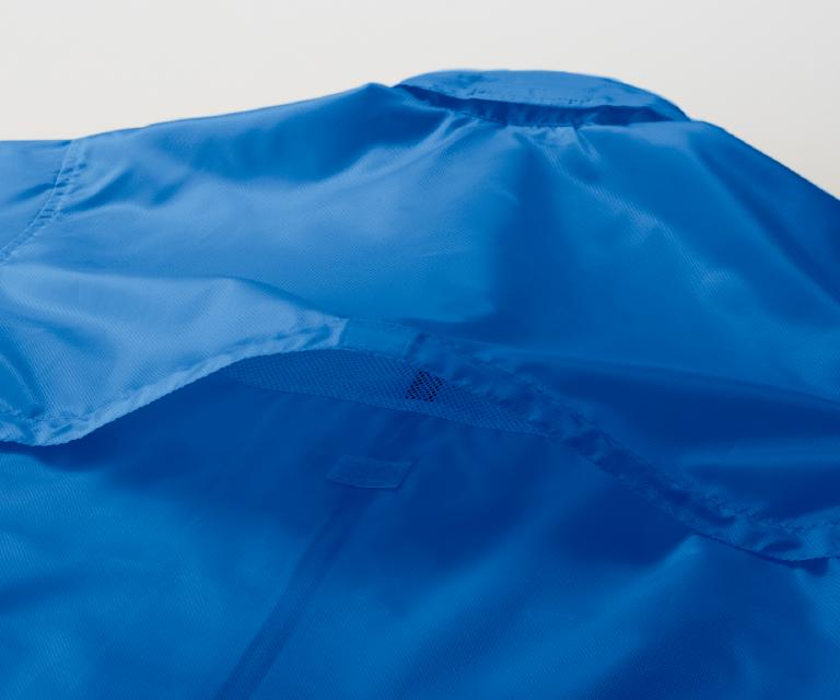 NBR-020 | TRUSS弱はっ水加工のため、屋外でのイベントに最適なブルゾンです。背中の内側はメッシュ仕様になっているのでムレ感が軽減されます。イベントで目立つカラーバリエーションを取り揃えており、襟にフードを収納しているので、突然の風や雨にも素早く対応できます。