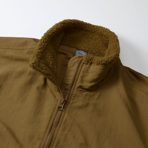7495 | United Athle「こんなにもこもこであったかいの?」もこもこなシープボアをふんだんに使用したジャケット。首元にもボアを使用しているため、寒くなりがちな首元まで寒さからカバーしてくれます。少し厚ぼったく見えがちなボア素材でも、ナイロン素材との切替があるからスタイリッシュに着こなせるのも良いですね。また、裾のドローコードを引っ張ることで、寒さを完全にシャットアウトすることもできます。このジャケットを着用して、もこもこぽかぽかな冬を過ごしてみてはいかがでしょうか。