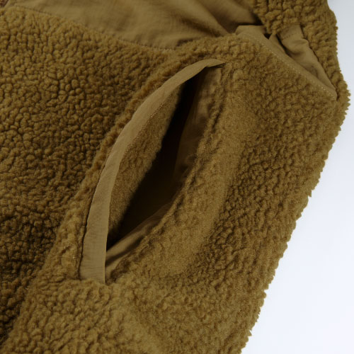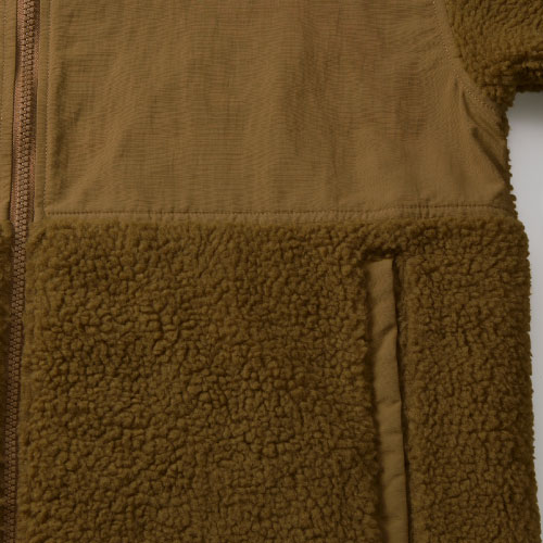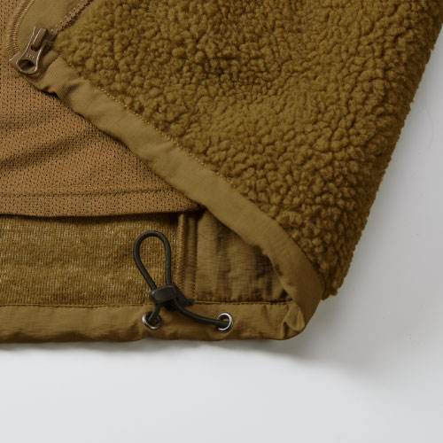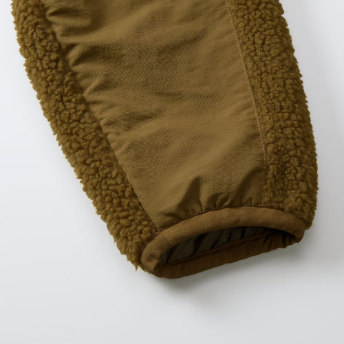 | 素材 | 〈表地ボア(身頃・袖)〉ポリエステル 100% 〈表地(切り替え部分)〉ナイロン 100% 〈裏地(身頃)〉ポリエステル 100%、 パンチングメッシュ 〈裏地(袖)〉ポリエステル 100% タフタ |