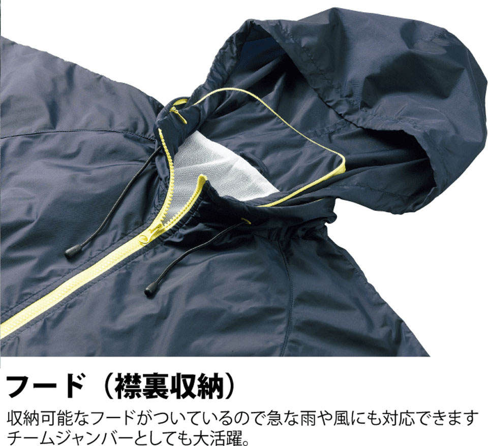 7056 | United Athle急な雨、風にも対応できるフードインタイプのナイロンジャケットです。フードを使わないときは、衿にしまい込む事が出来きます。裏地には起毛素材が使って有りますので優しく温かい着心地です。商品カラーは綺麗な色のイエローから落ち着いたブラックまで様々なタイプを選べます。背中に大きくプリントしてインパクト大にしたり、胸にワンポイントでも決まります。お揃いのジャケットを着てカッコいいチームウェアで他のチームに差をつけてください。商品サイズはS~XLの展開になりますので、女性の方はサイズ表を確認しご注意ください。