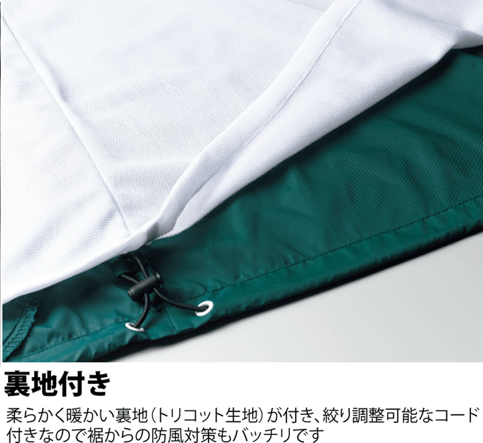 ポリエステル100% サテン 裏地:ポリエステル100% 保温材:ポリエステル100% リブ:ポリエステル95% ポリウレタン5%