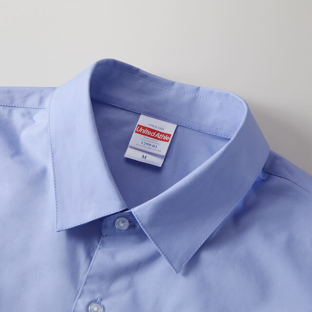 1299 | United Athle袖まわりがゆったりしており、一枚でさらっと存在感のある着こなしが決まるシャツ。 夏に1枚で着ても過ごしやすい厚みで、ブロードクロスという目のつまった織り方がされた滑らかな生地が特徴。生地はさらさらとしていて肌触りがよく、高級感があります。 冬には重ね着のインナーとしても活躍します。さまざまなパンツとも相性が良く、お洒落なユニフォームを作製する際にはぴったりの1枚です。