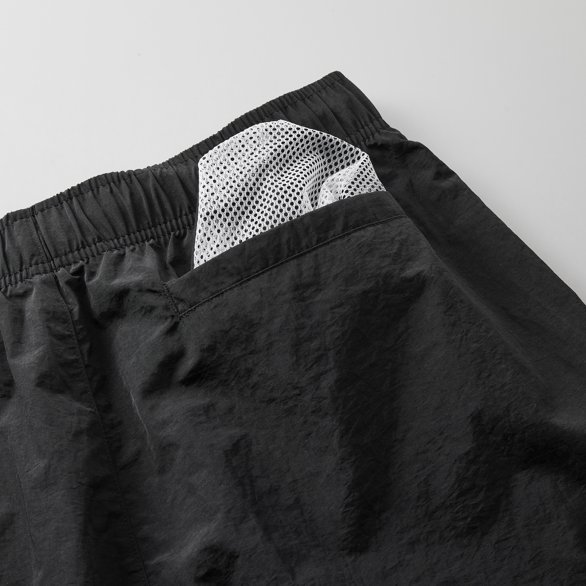 | 素材 | ナイロン 100% しわ加工生地 ※脇ポケットあり、脇縫いなし、ウエスト丸ひもあり(内側)、ヒップポケットあり |
