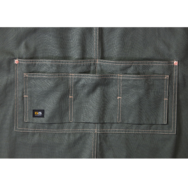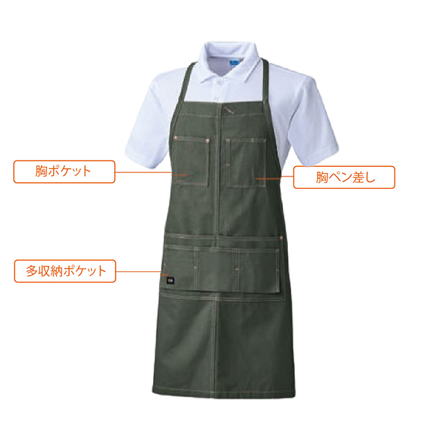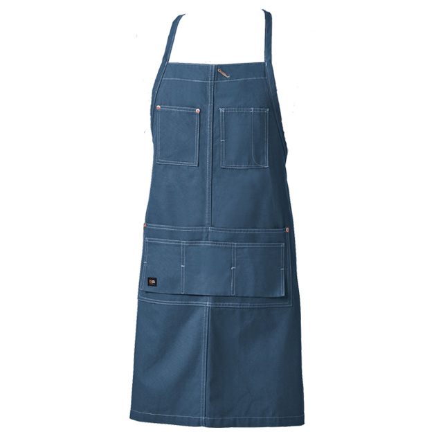 10131 | SOWA通気性と耐久性に優れたキャンバス生地を使用した首掛けエプロン。首と腰に紐を巻くタイプなので体にもフィットして動きやすいです。カラーはブルー、アーミー、ライトブラウンの3色展開で、エプロン素材に映えるステッチがおしゃれです。ペン差しや6つのポケット付いているので、収納力、実用性ともにバツグンです。フリーサイズなのでユニセックスでお使いいただけます。DIYやガーデニング、料理時など様々な用途にご使用できます。