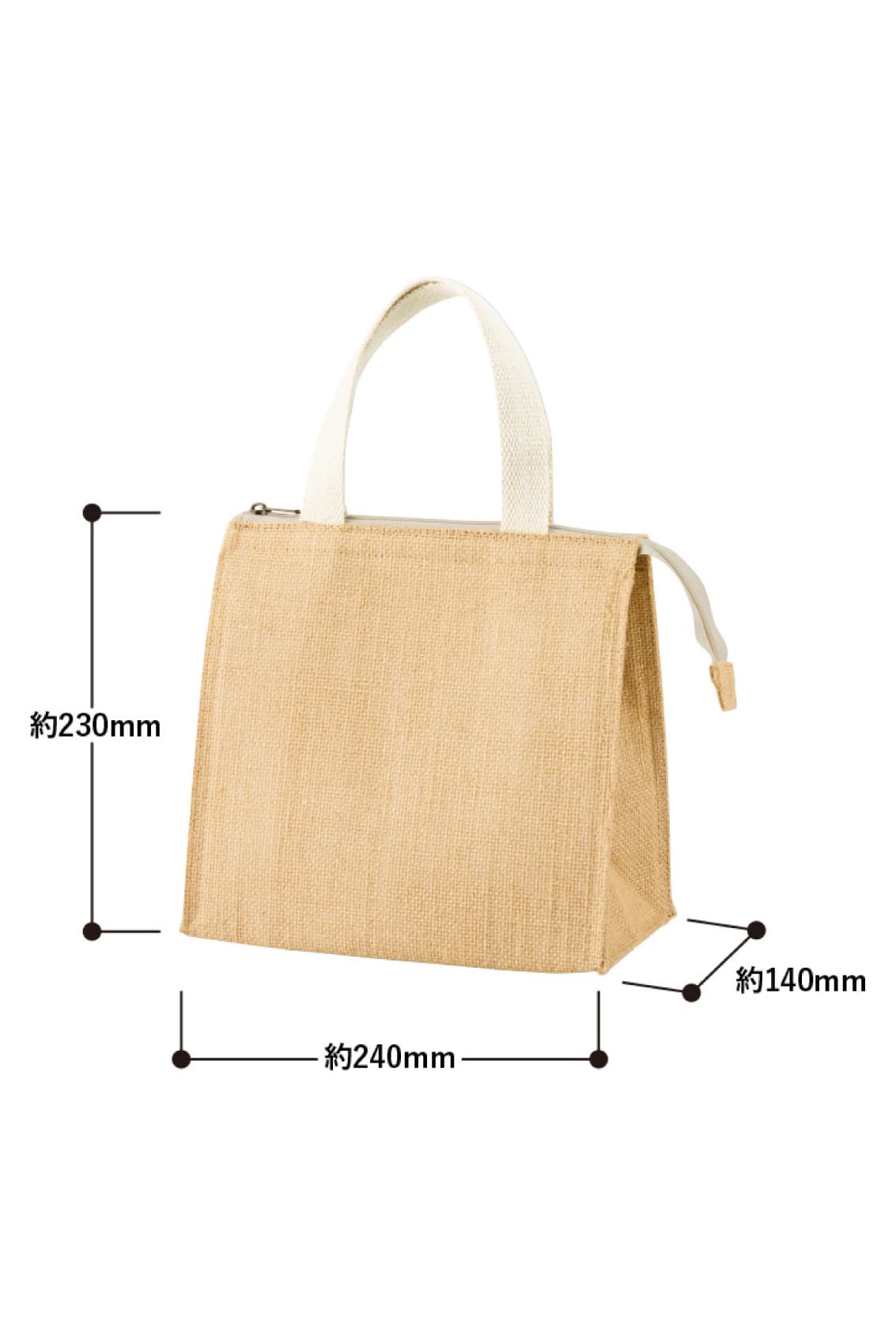 TR-1405 | MARKLESS STYLE大人気のジュート素材を使用した、暑い季節にも便利な保冷スクエアトートバッグです。食料品店の販促品や、お土産品店などのオリジナル保冷ショッパーとしてもおすすめ!レジャーやアウトドアはもちろんのこと、保冷バッグに見えないおしゃれなデザイン、ファスナー付きで中身が見えない仕様なので普段使いにもご利用いただけます。サイズはしっかり荷物の入るM(品番TR-1223)との2サイズをご用意。こちらのSサイズはお弁当やペットボトルを入れて、ランチバッグとしてお使いいただくのにちょうど良い大きさです。