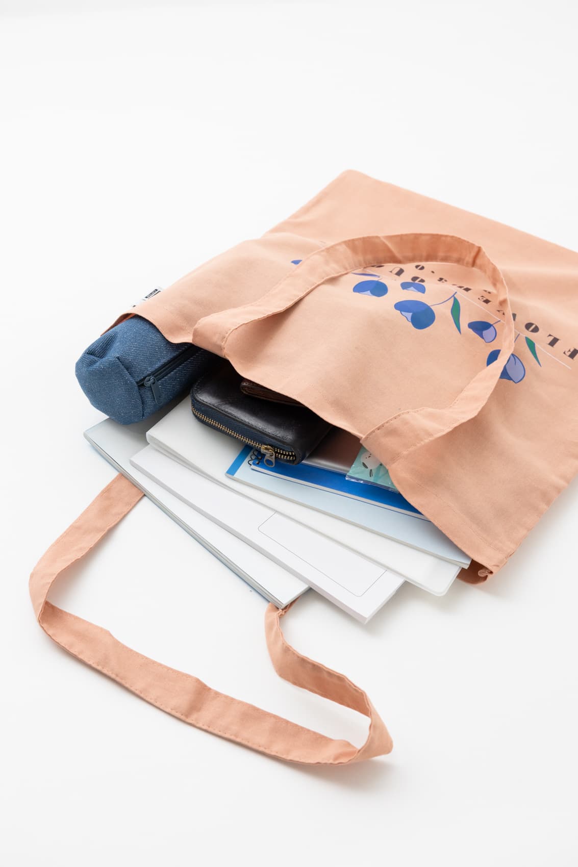 TR-1401 | MARKLESS STYLE人気のオーガニックコットンを使用した、マチなしフラットタイプのトートバッグです。薄手の生地でサブバッグとしても重宝します。環境関連イベントなどでカタログや資料を入れる配布用バッグとしても使いやすい、肩掛け可能な長めの持ち手を採用。おけいこバッグにもおすすめのサイズです。オリジナルノベルティやグッズ製作、生地の特性を生かした用途にもご提案いただけます。カラーは全5色、サイズはM(品番:TR-1400)・Lの2つをご用意。こちらのLサイズはA4がらくらく入る大きさとなっています。
