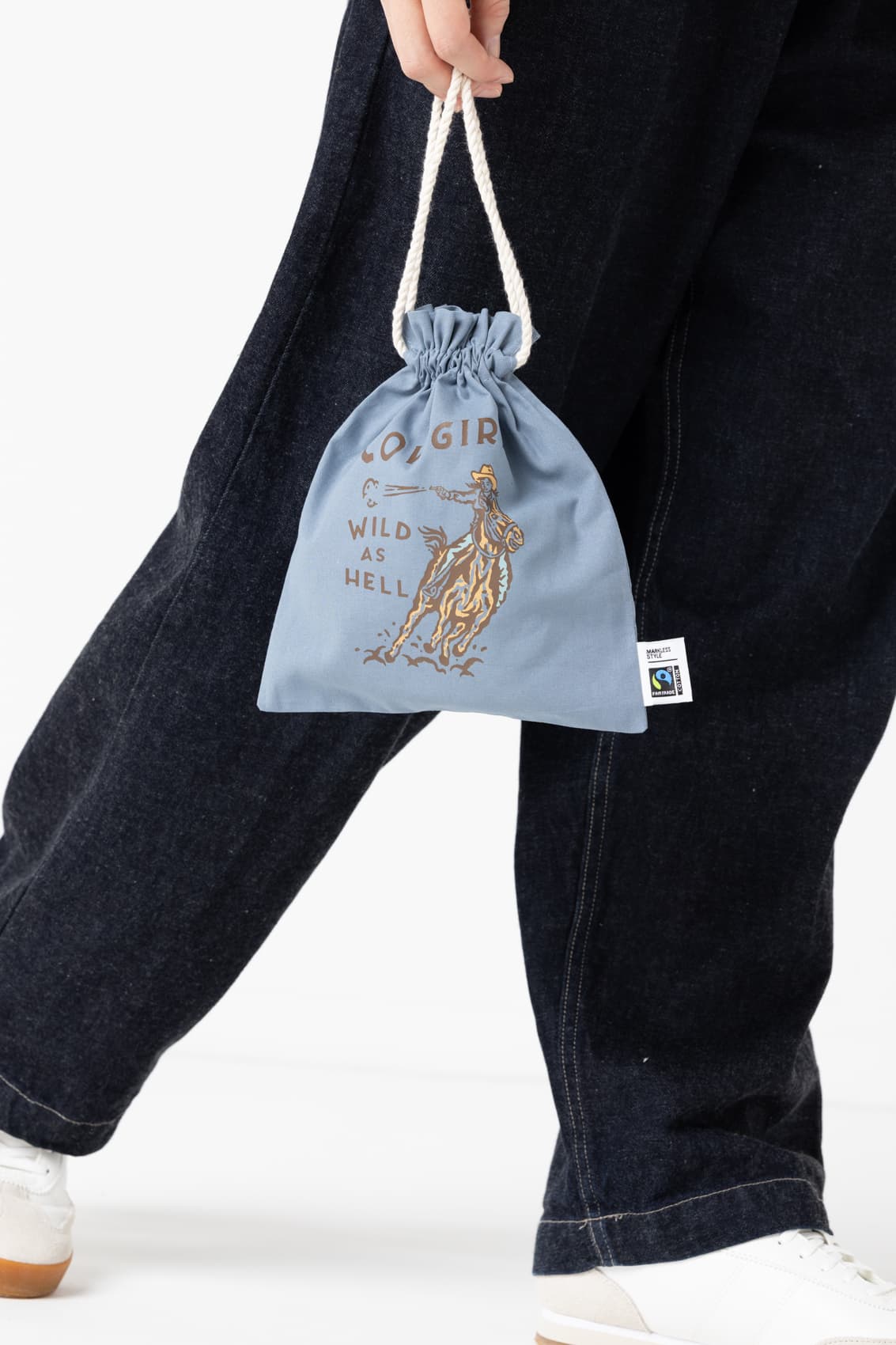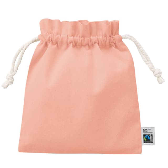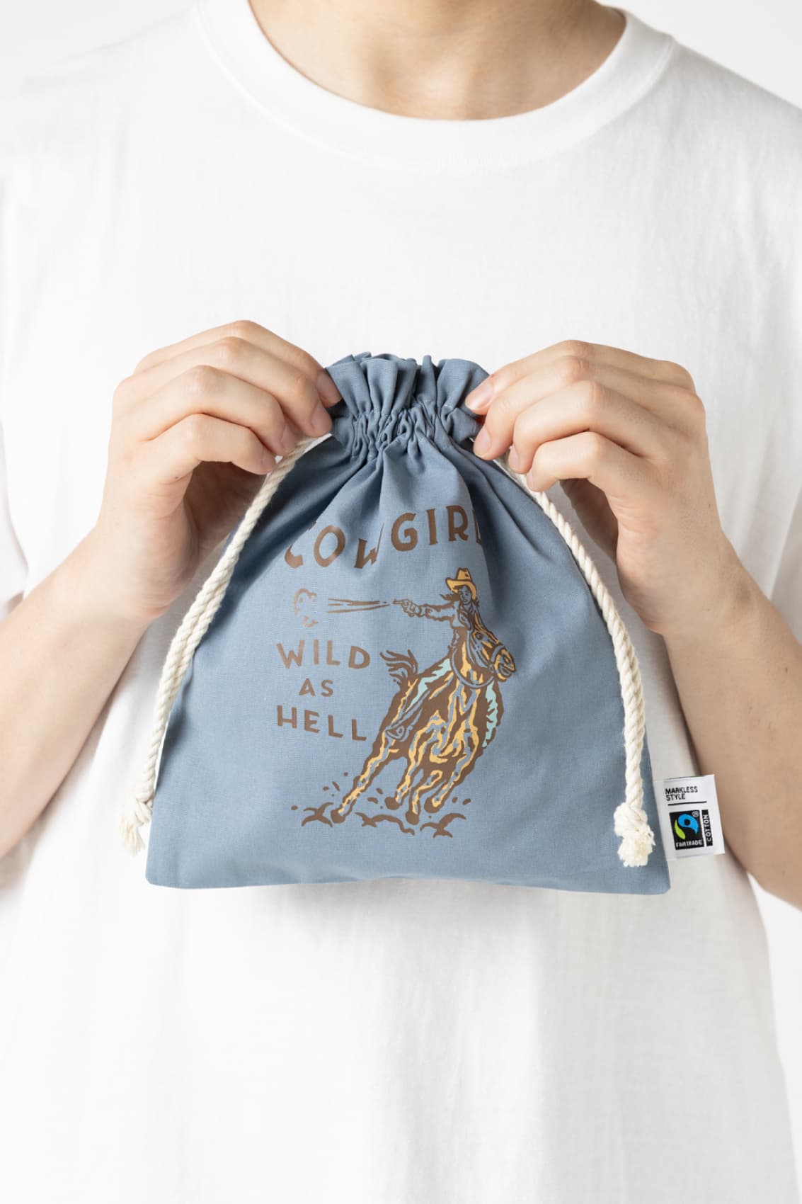 TP-0049 | MARKLESS STYLE生地・ひも・全ての素材にオーガニックコットンを使用し、環境と人に配慮した「フェアトレード認証」を取得した巾着です。ねじったロープタイプのひもがポイント。きゅっと絞ると口元がくしゅっとかわいい人気のフリル型は、ノベルティやプレゼントにも最適で、華やかな印象を与えます。ホテルのアメニティポーチや旅行アイテムにもおすすめです。カラーは全5色、S・M(品番:TP-0049)の2サイズ展開で、Mは記念品や包装として雑貨などを入れるのに便利な大きさになっています。高級感ある刺繍も最短2日後発送!大量注文もお任せください。