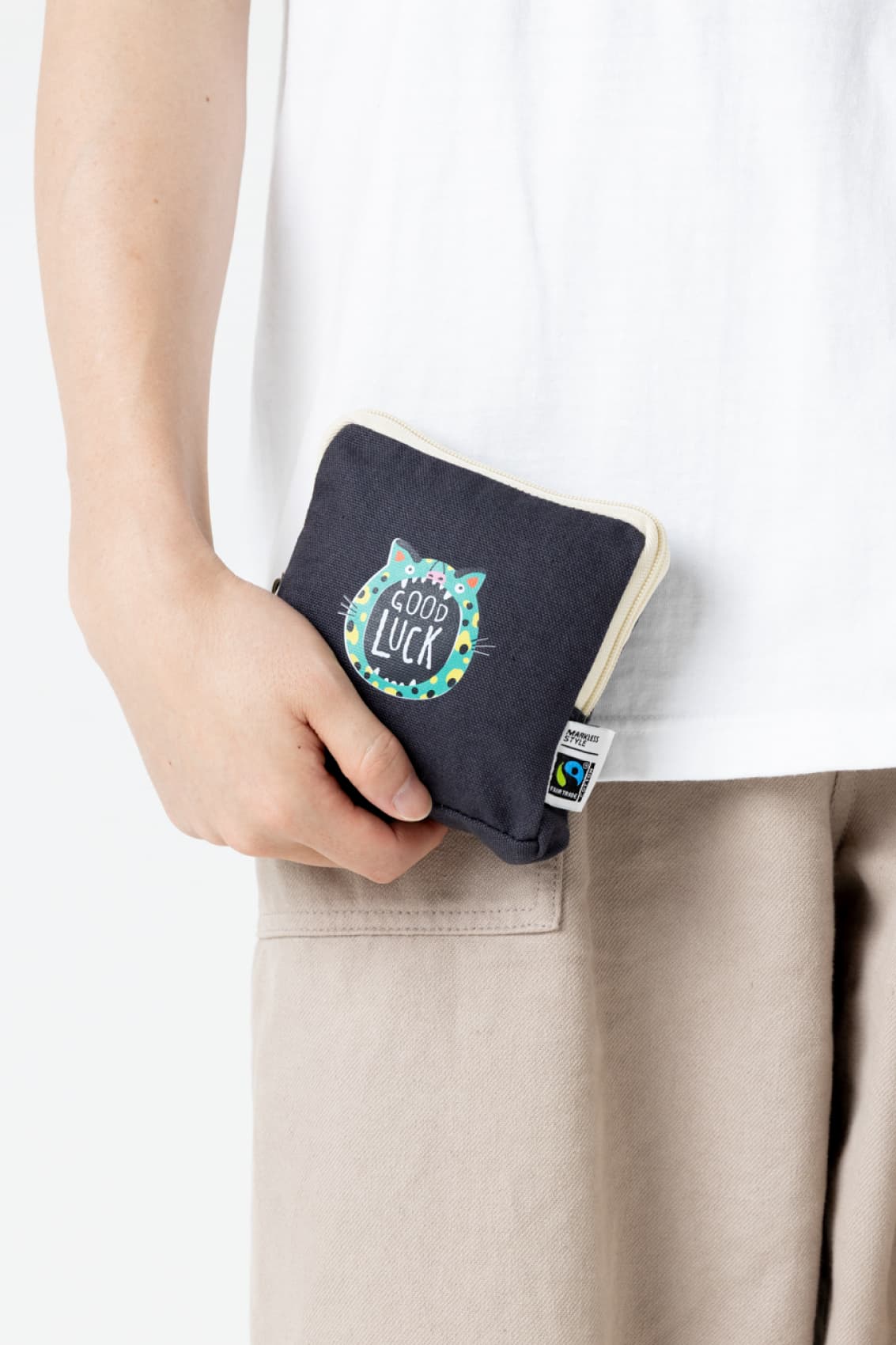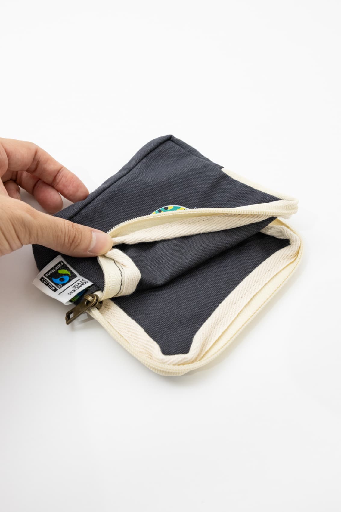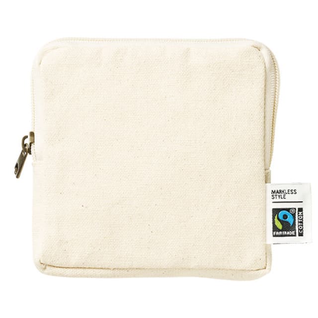 TP-0050 | MARKLESS STYLE環境と人に配慮した、フェアトレード認証のオーガニックコットンを使用したスクエアポーチです。カラーは全5色。S・M(品番:TP-0051)の2サイズ展開で、Sは小物入れやメイクポーチなど、持ち歩きにちょうどいいサイズになっています。2cmの絶妙なマチ幅があることで、コスメなどがすっきり収納できるところがうれしいポイント。小ぶりなバッグの中でもすっきり収まるデザインです。コの字型のファスナーで口が大きく開き、奥まで中身を確認しやすいので、簡易的なお財布としてもおすすめです。企業ノベルティや販促アイテム、オリジナルグッズの作製にいかがですか。
