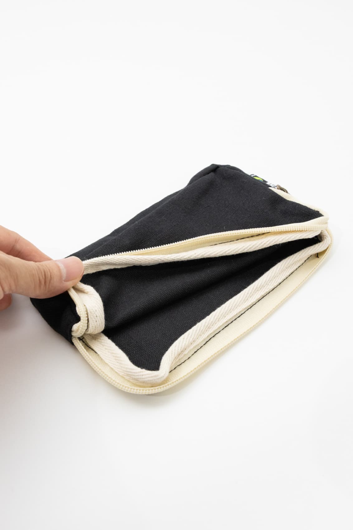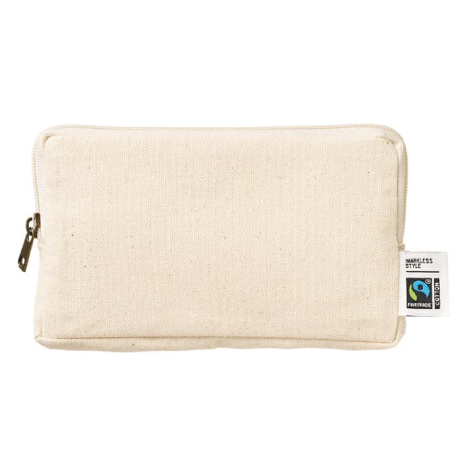 TP-0051 | MARKLESS STYLE環境と人に配慮した、フェアトレード認証のオーガニックコットンを使用したスクエアポーチです。カラーはやさしい雰囲気の全5色。S・M(品番:TP-0051)の2サイズ展開で、Mは横に長い仕様のためステーショナリーポーチなどにもぴったりです。文具や雑貨を取り扱っている企業ノベルティや販促アイテム、オリジナルグッズの作製にもおすすめです。2cmの絶妙なマチ幅があることで、小物がすっきり収納できるところがうれしいポイント。コの字型のファスナーで口が大きく開き、奥まで中身を確認しやすいので、簡易的なお財布としても便利なポーチです。