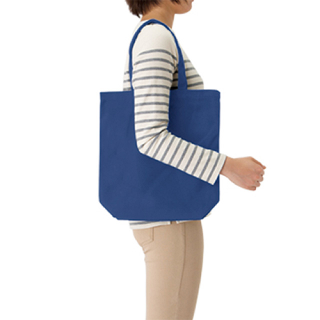 TR-0562 | MARKLESS STYLE厚手の資料やカタログ等の収納が可能です。1㎝程の厚さの書類束や書籍なら12冊は入ります!持ち手が長いため肩掛けもでき、持ち運びにも便利です。企業の展示会、学校の説明会と資料が多い時の催しにお勧めアイテムです。企業ロゴ、学校の校章などのプリントも可能です。ポリエステル素材で生地は軽く柔らかいのが特徴。