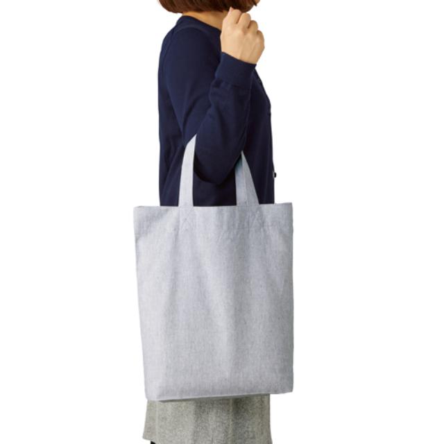TR-0937 | MARKLESS STYLE布地を糸として再利用したリサイクルコットンを使用し、ナチュラルに仕上げたバッグです。A4サイズが収容でき、マチ付きなのでライブグッズや企業用ノベルティ、スクールバッグなど幅広い用途にご利用いただけます。肩掛け利用も可能です。アーティストの名入れやロゴをプリントすると盛り上がること間違いなし!企業や学校などのオリジナルデザインをプリントしても知名度の向上に繋がりますね。