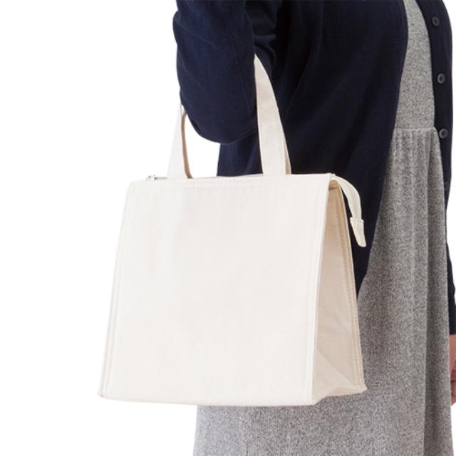 TR-0868 | MARKLESS STYLE保冷温付きのコンパクトな保冷バッグが登場しました。ランチバッグやお弁当に最適!缶飲料なら6本入るので、アウトドアにも便利です。内側のアルミが保冷保温効果を発揮、食材が痛むのを防ぎます。表面はコットン生地を使用し、厚みがありしっかりしています。スリムだけどマチ付きだから、お弁当箱や水筒を入れた時も傾きにくくなっています。ファスナー付きなので中身も見えなくて安心です。ナチュラルとブラックの2色からお選びいただけますので、男性の方にもオススメ!お店のロゴや名入れでノベルティとしてオリジナルバッグはいかがですか。