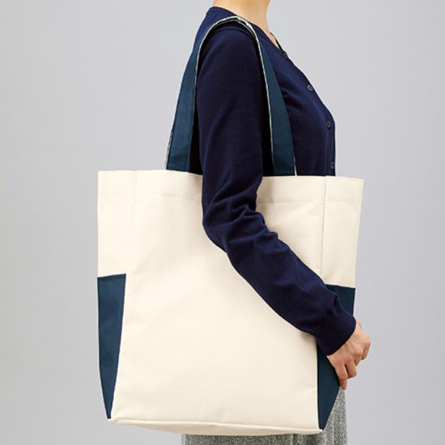 TR-0993 | MARKLESS STYLE大人気マルチトートのコンビバージョンが登場致しました。アクセントになる外側のカラーポケットにはペットボトルや折り畳み傘が収納出来ます。小物入れに便利なインナーポケット付き!間口にはホックが付いており、中の荷物が見えにくい安心仕様です。A4サイズも余裕で入り、生地にもしっかりした厚みがあるので、通勤通学やレジャーバッグ、旅行バッグとしても大活躍してくれます。