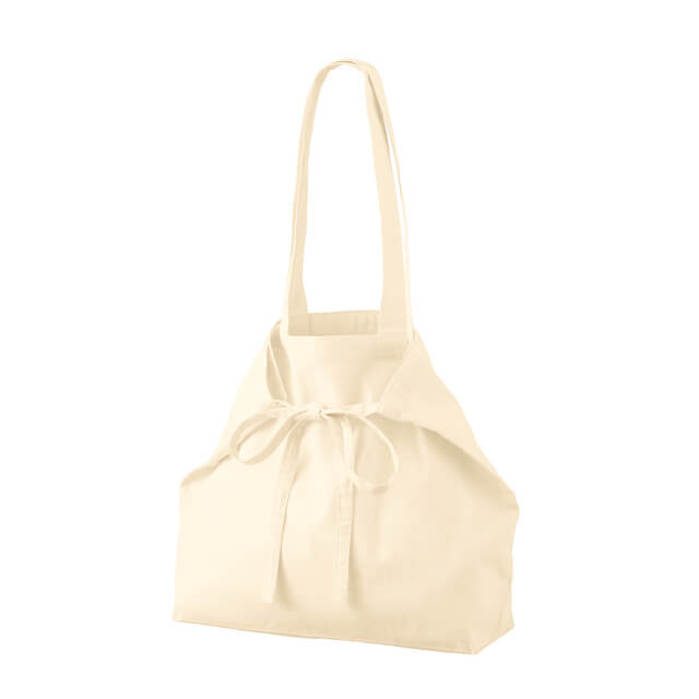 TR-1304 | MARKLESS STYLE紐リボン付きファッショナブルなオーガニックコットントートバッグです。。 サイドについた紐リボンの結び方を変えれば、3WAYでお楽しみいただけます。 紐を中に結んで台形型バッグに、表でリボンを結んでリボンバッグに、 左右の紐の先端を結んでショルダーバッグにと、フォルムを変えながら使用することができます。 かわいらしいデザインを生かしたアパレル購入特典や女性向けノベルティ製作にもおすすめです。