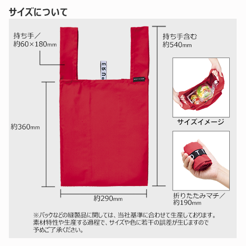 | 本体サイズ | 本体/約W29×H36(持ち手含むH54) ・持ち手/約6×18・折りたたみマチ/約19 |