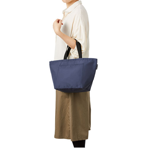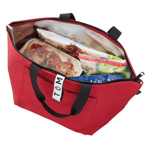 TR-1100 | MARKLESS STYLEペットボトルなどから再生された生地を使用した環境にやさしいクーラーバッグです。クルリトシリーズの特徴であるゴムが付いており、折りたたんでコンパクトに持ち運ぶことが出来ます。冷凍食品などをそのまま入れることができるようにマチを広く設計しており、500ml缶を8本収納できるサイズとなっております。お弁当入れからちょっとしたお買い物まで、さまざまなシーンで活躍するバッグですので、プレゼント品やスーパーでの買い物用エコバッグなど幅広くご利用頂けます。