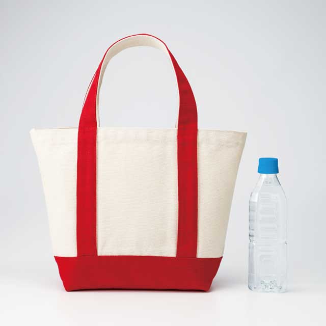 MVT-026 | TRUSS3色展開のバイカラートートバッグ。16オンスで厚みがあり、しっかりしているのでアパレル商品や記念品としての販売におすすめの商品です。お弁当箱サイズで、近くのスーパーへのお買い物用バッグにぴったりです。バイカラートートポケット付(HVT-024)とはカラー部分の素材と色味が異なります。