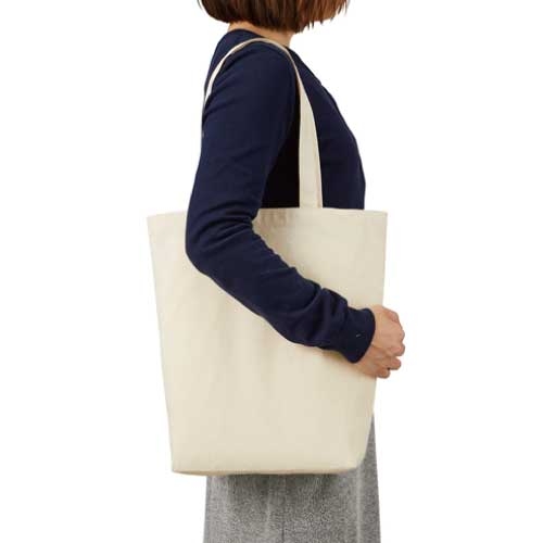 TR-1012 | MARKLESS STYLE大人気サイズの厚手コットンバッグ。生地の目が詰まった5オンスの生地を使用しており、書類やカタログなどを入れて持ち歩くのに便利です。A4サイズが入るマチ付のタイプは、ノベルティの定番商品となっております。展示会の資料配布やライブ物販、お買いものバッグなど幅広い用途でお使いいただけます。