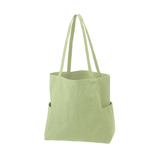 TR-1328 | MARKLESS STYLE台形型ボディのウォッシュキャンバストートバッグです。 細幅のハンドルは台形ボディとのバランスがよく、 肩掛けしたときに口元がたわむことによって、よりバッグのフォルムが引き立つデザインです。 また両サイドには便利なポケット付きなので、ボトルや傘を入れることができ、 たっぷりものが入るメインバッグとして活躍してくれます。 バッグのシルエットを生かしたおしゃれな物販品や特別感のある購入特典としてもおすすめです。