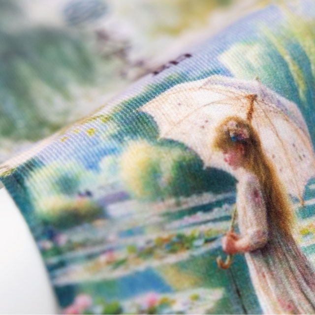 昇華転写は、インクに熱をかけて気化させポリエステル100%の生地に染み込ませる、「昇華転写(しょうかてんしゃ)」と呼ばれるプリント方法です。