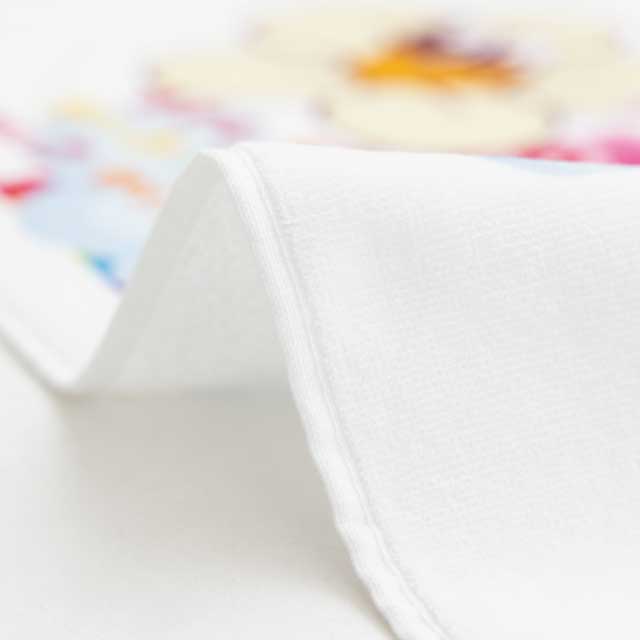 顔料インクジェットは、タオル生地表面にインクを吹き付ける、「インクジェットプリント」と呼ばれる方法です。